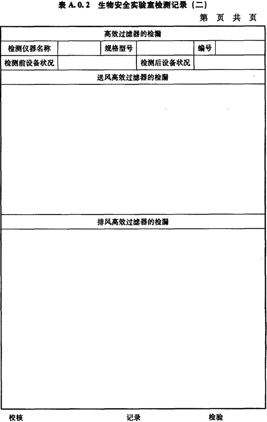 A.0.2 生物安全实验室送风、排风高效过滤器检漏情况应按表A.0.2进行记录。