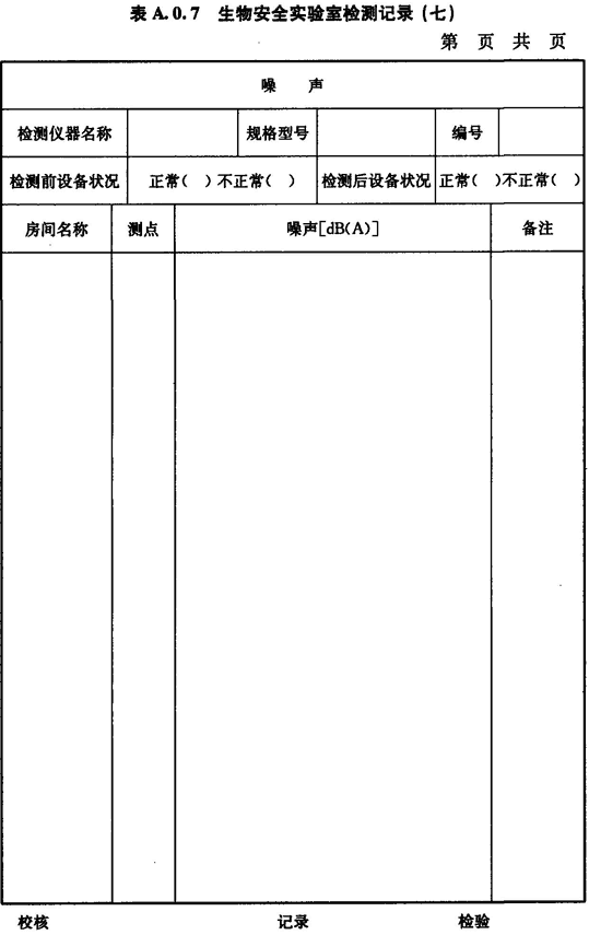 A.0.7 生物安全实验室房间噪声的检测应按表A.0.7进行记录。