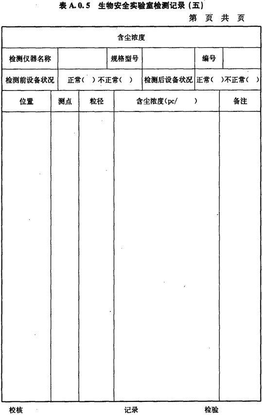 A.0.5.生物安全实验室房间含尘浓度的检测应按表A.0.5进行记录。