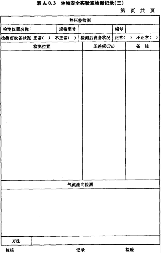A.0.3 生物安全实验室房间静压差和气流流向的检测应按表A.0.3进行记录。