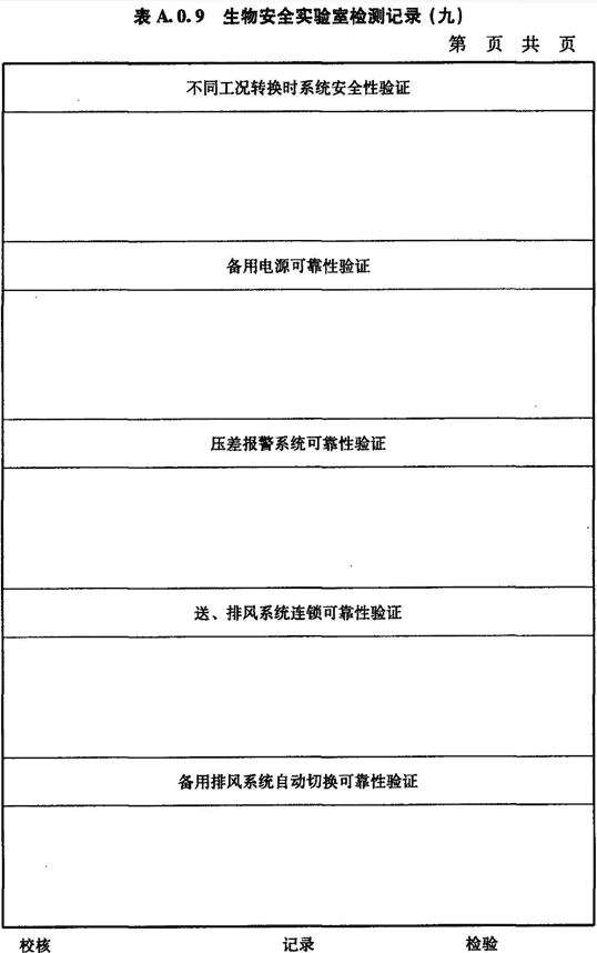 A.0.9 生物安全实验室配电和自控系统的检测应按表A.0.9进行记录。